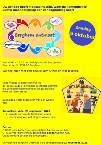 Uw zondag hoeft niet saai te zijn, want in de winter kunt u één keer per maand naar Berghem Ontmoet.