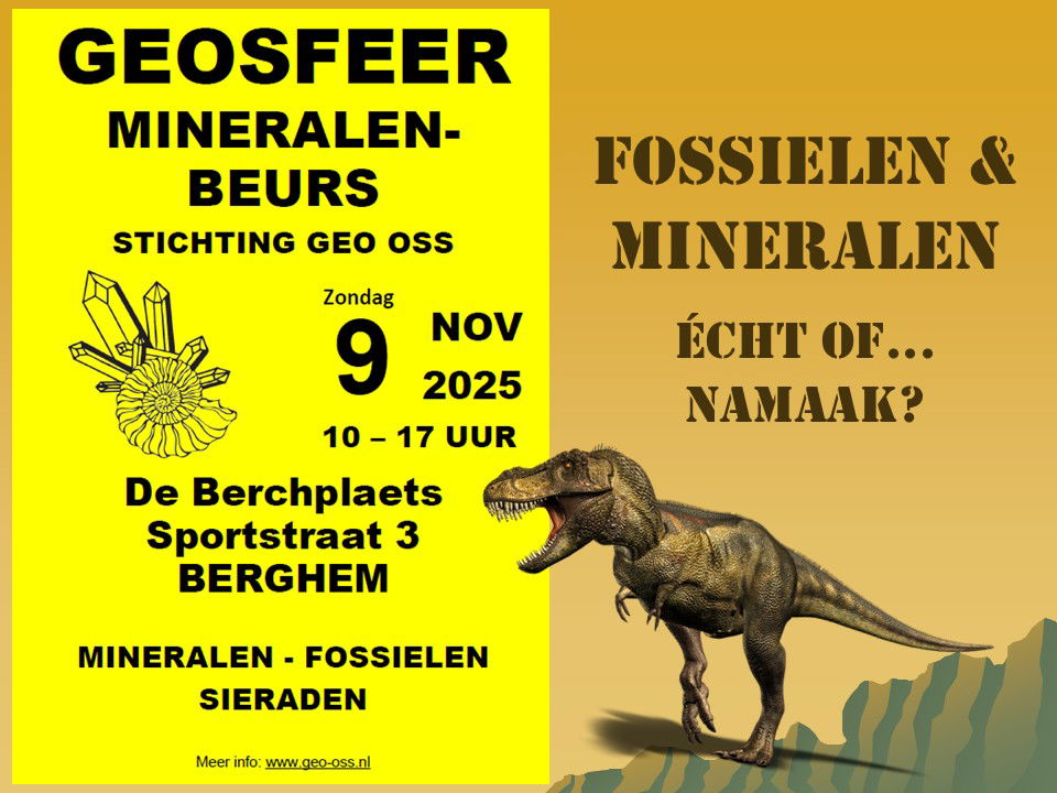 Met meer dan 1000 bezoekers en zo’n 40 standhouders is GeoSfeer – de jaarlijkse fossielen & mineralenbeurs van Stichting Geo-Oss – een van de grootste Geobeurzen van Nederland. Geo-Oss richt zich met haar beurs op liefhebbers & verzamelaars, én op gezinnen en jeugd.