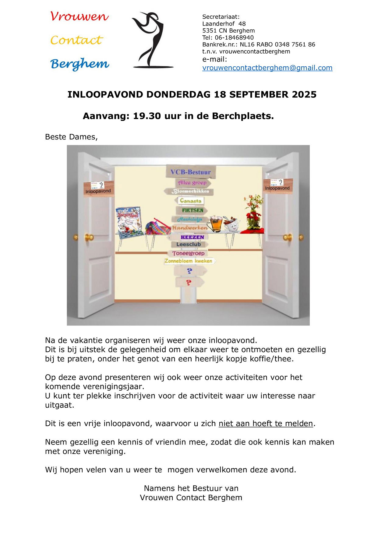 Jaarlijkse inloopavond vrouwen contact Berghem