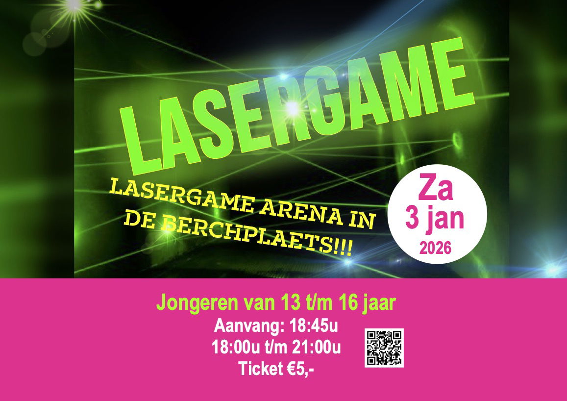 Begin het nieuwe jaar goed! Voor het eerst organiseren we een lasergame night speciaal voor jou en je vrienden. De grote zaal van de Berchplaets wordt omgebouwd tot een ware Lasergame arena. Bestel snel kaarten. Duik in het donker, sluip rond en schakel je tegenstanders uit. Vol is vol. Als je met 5-6 vrienden komt. Heb je een heel team. Natuurlijk kun je ook aansluiten bij een ander team.
